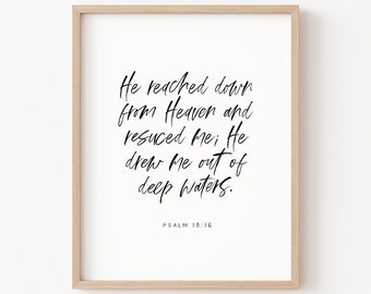 He Reached Down From Heaven Rescued M Psalm 18 16 Bible Etsy Australia